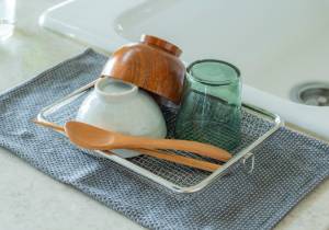 食器の水切りかごとしても 食器やカトラリーの水切りにも。