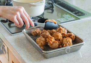 揚げ物の油切りにも 平らな面が広く、食材を重ねずに