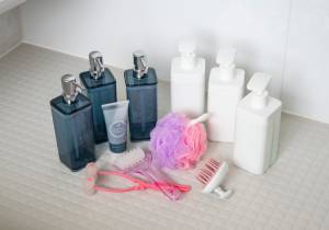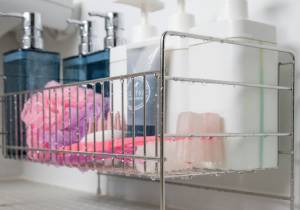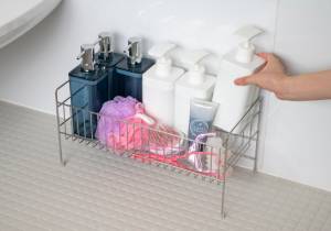 ブラシや泡立てネットなどの小物類もまとめられ、浴室や洗面所のごちゃつきを解消。