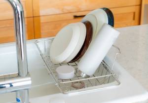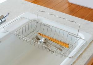 作業スペースを有効活用シンクに渡せる省スペースな水切りかご。
