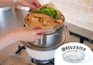 深型は二段蒸しに便利なざる付き 専用のざるで二段に分けて蒸すことも◎。
