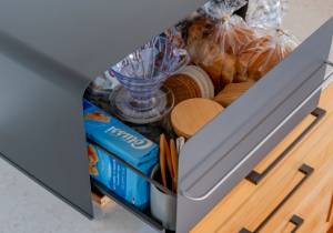 ごちゃつくキッチンがすっきり 奥に収納した物も見えやすい、