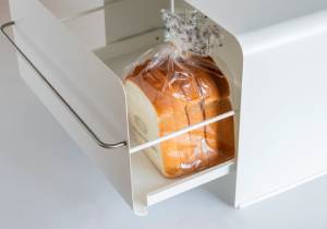 山型食パンがスッポリ 山型食パンを立てたまま入れられる収納力。