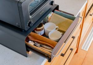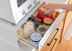 ごちゃつくキッチンがすっきり 奥に収納した物も見えやすい、