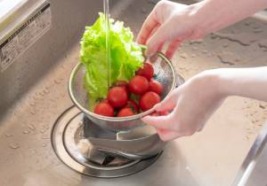 洗ってそのまま調理へ 野菜をサッと洗って水を切り、そのまま